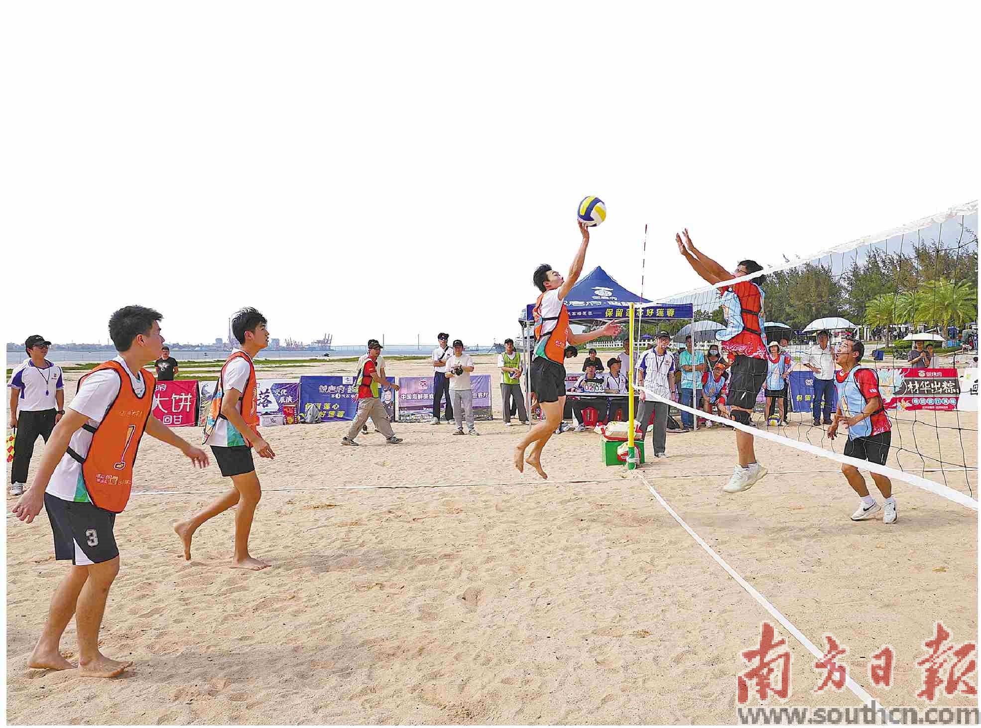 奥体中心沙滩上举办的沙滩气排球比赛。杨证民摄