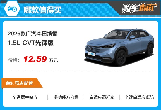 综合来看创达盈,如果您正在关注2026款广汽本田缤智,那么1.5L CVT先锋版在购买时可优先考虑。